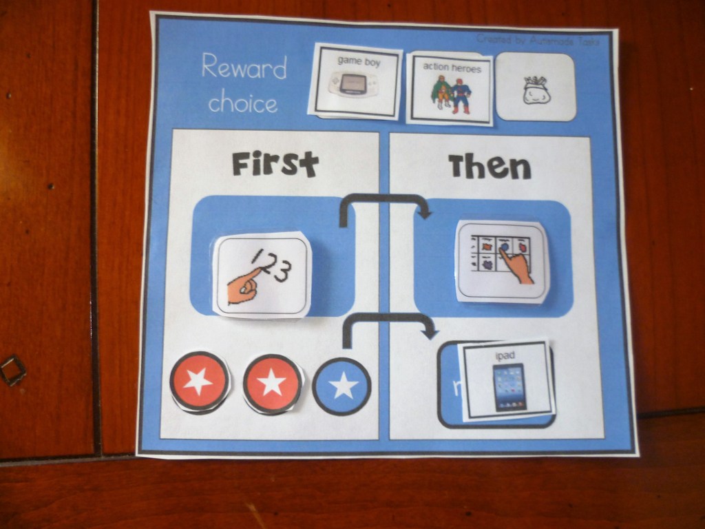 5. First and Then combined board – I combined a board with “First and Then” and Token Rewards. This helps with a more focused lessons and one to one work. By using this strategy my students know what they must complete before having the motivator they’ve chosen. It also provides me with the control over the distribution speed of tokens and become a successful part of my behaviour support plans.