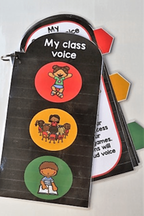 I use a quick reminder booklet to reinforce outside, inside and class voices!