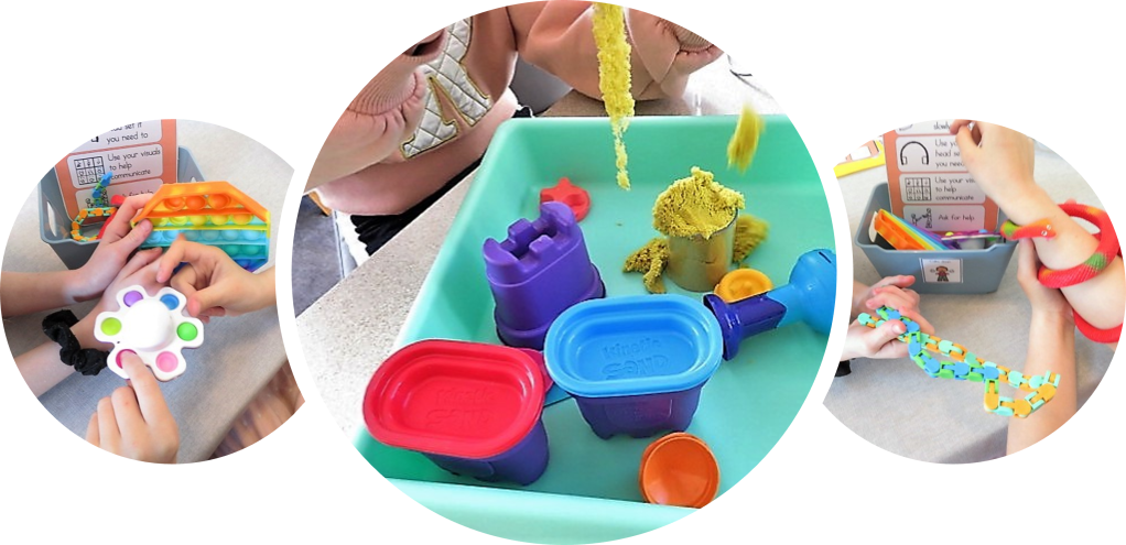 SENSORY SIMULATION – Offer opportunities for bouncing on a large ball or trampoline, spinning, squeezing sensory balls, chewy toys, sand play, water play, banging a drum.