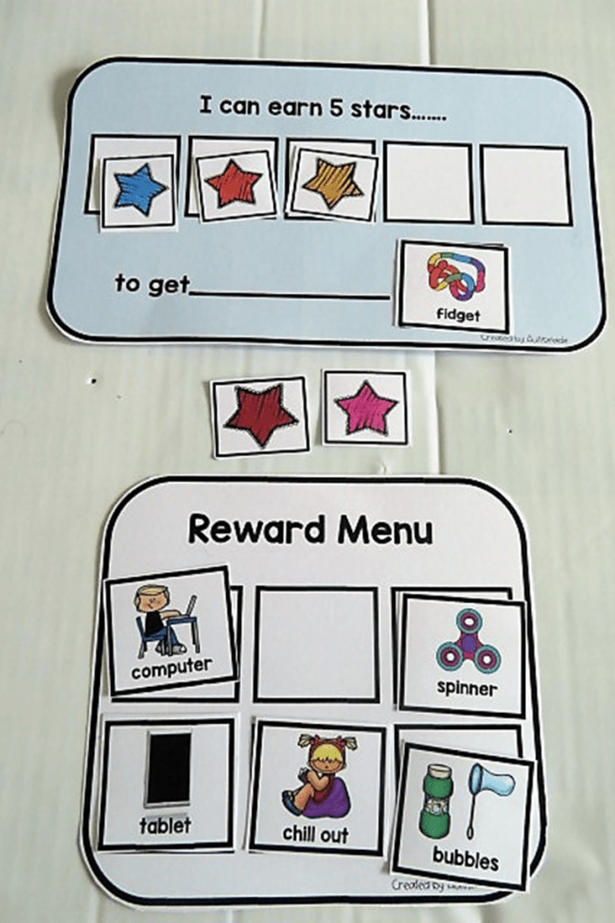 And my all time favourite support! (already established) that always seems to work and get the little learner back on track is the REWARD BOARD and MENU CARD!