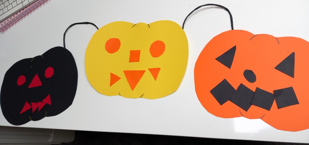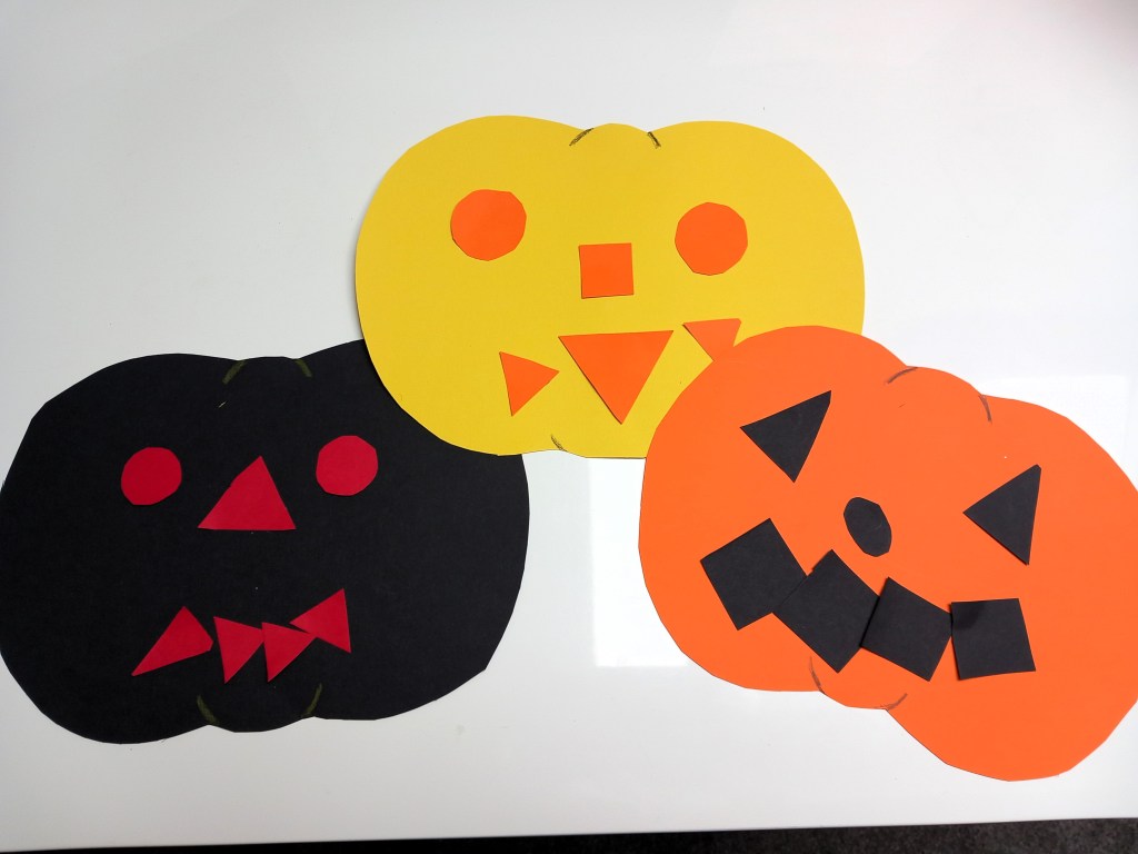 •Offer the cut out shapes for them to paste to their pumpkin face following the direction cue card.